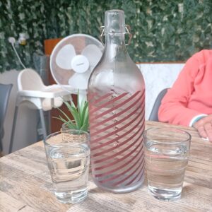Assuming the Chai would arrive much later, Marg was content with sharing tap water. Suitably chilled, or is the ambient temperature now such that this is no longer an issue, this would keep us amused during the wait for the food to be prepared.