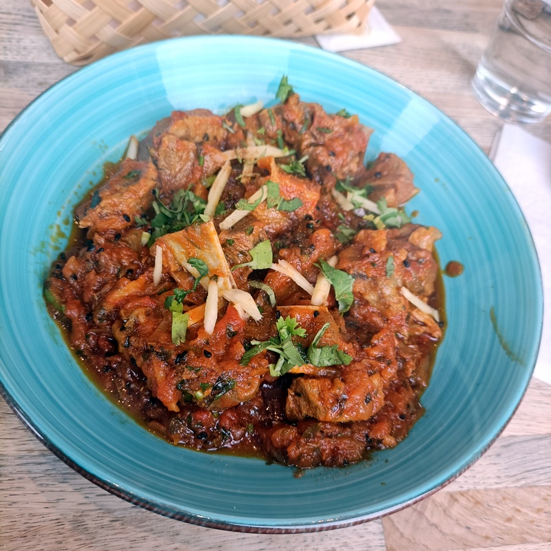 Suddenly, Marg was having Curry – Mix Vegetable Curry (£7.95) and was not missing out on Desi Karak Chai (£3.00). Having had mixed outcomes in my previous three visits, I thought I would play it safe. I verified that the Lamb Karahi (£12.85) was available. Strangely, the waitress had to check that a Tandoori Naan (£2.80) could be served.
