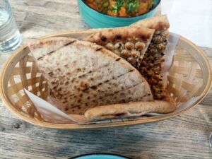 A smaller dish than the Lamb Karahi, but full of hot vegetables in a dry sauce with coriander sprinkled on top. A medium spice was asked for and it ticked all the right boxes. A good flavour from the vegetables and I enjoyed the bread which had sesame seeds and a pattern throughout the top. The dish was filling and very enjoyable.