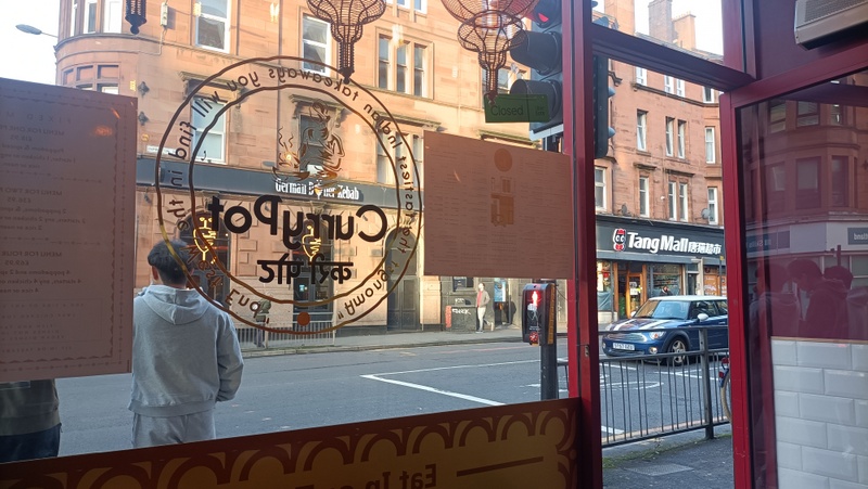 I watched people pass by the door, plus those who stopped to read the menu posted in the window. Curry Pot may well become an oasis in Partick as it evolves into Glasgow’s Chinatown. It was therefore somewhat ironic when the first sit-in customers to join me this year were Chinese. Man cannot live by Ramen alone.