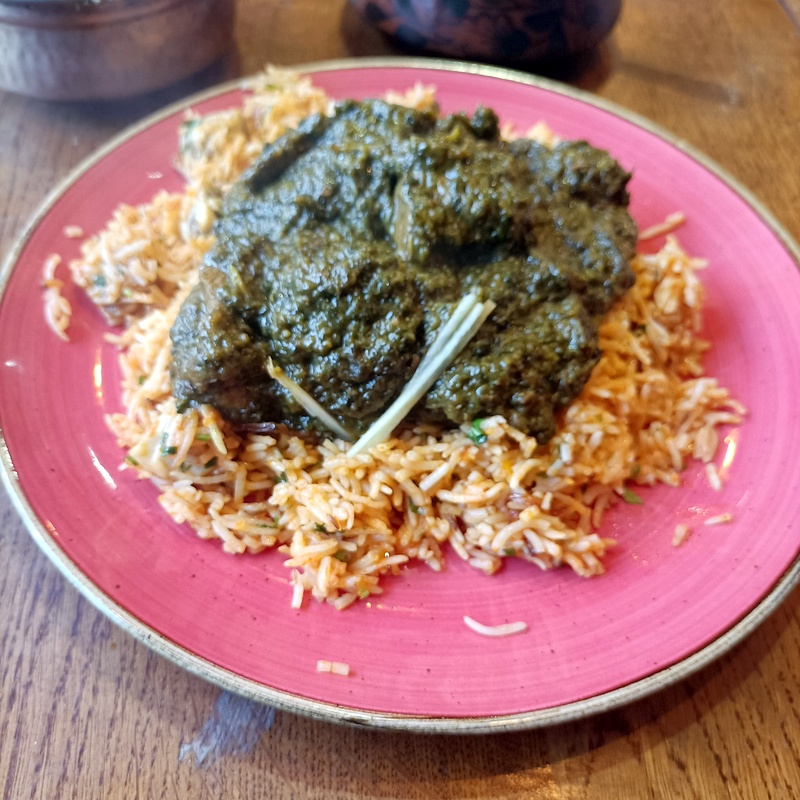 With business to attend to this afternoon in the West End, what better opperchancity to pop into Curry Pot (139 Dumbarton Road, Glasgow G11 6PR). At 18.20, Curry Pot was certainly open for business. Suriya came out from the kitchen to greet and take the Order. Despite a seeming overdose of Spinach in recent times, today had to be Lamb Saag (£9.50). This completes the coverage of the Lamb Dishes at Curry Pot, save the Karahi which may be had one day, when Simrat, Mein Host, agrees to drop the offending Ballast. As is the norm here, Mushroom Rice (£3.60) completed the Order.