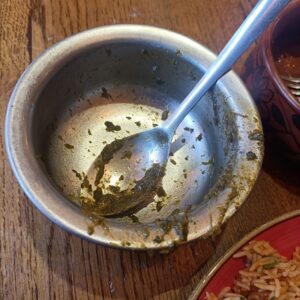As is written oft, and as recent as last Friday when I served up Palak Gosht, there are two approaches to preparing this Curry. This Mash of Herbs is not my favoured style, here it was.