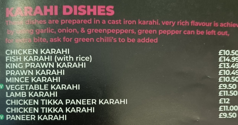 Our waiter today, Ali, was front of house. He suggested Poppadoms (£1.00) as we took our seats. As ever, the Hector was not playing this game. As we studied the menu, Ali asked if we needed help with Pakistani food.