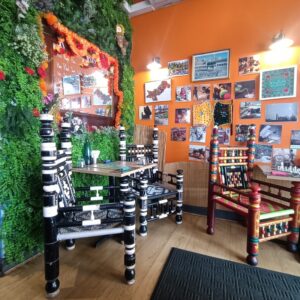 The décor was very much in the style of what I shall refer to as – Horn Please! Busy, bright, fun. The serving counter, kitchen and facilities were somewhat detached from the main seating area. We sat alone.