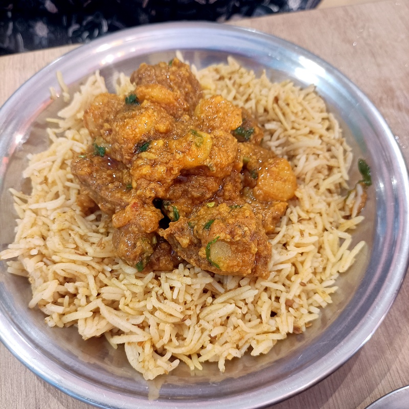If I was to order Rice with Karahi in my favourite Glasgow Curry Cafes, eyebrows would be raised. I tried it once, and they were. When heads were shaken, Naan please.