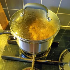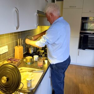 During the preparation, the Hector kept his nose out of the kitchen. Copious Onions were heard being chopped, it was only when all was in the pot that the – for the record photos – were captured.