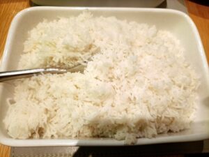 Boiled Basmati would form the principal base for Hector’s plate. Poppadoms and Naan had been bought in for the occasion, the former ignored by this commentator. Both Kath and Graeme were of the opinion that the Naan had been over-watered before reheating, the half I took was as good as one can expect. Light and fluffy, no problems here.