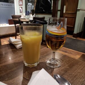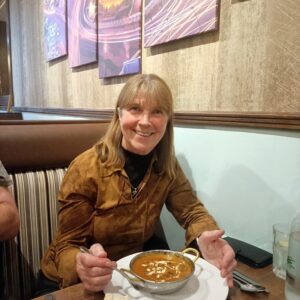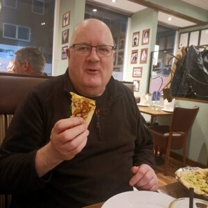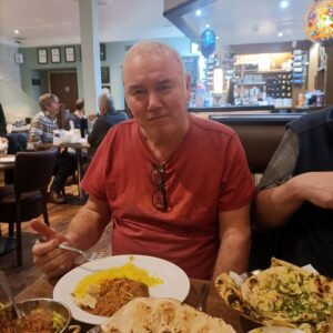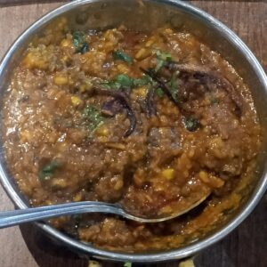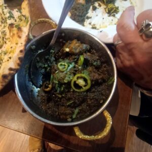 Our venue tonight offers the potential for some interesting and different curries. Each still needs an explanation from the owner. My choice tonight was Lahori Beef. Often with lamb dishes either the lamb has flavour or the sauce. The best lamb curries give you flavour from both. In this case with the beef it had flavour. The sauce looked excellent but didn’t release much flavour. The nan was good while the vegetable pakora shared with Eleanor as a starter didn’t offend. A decent curry without setting the world on fire. Some marinated leftovers for tomorrow might mean an improvement.