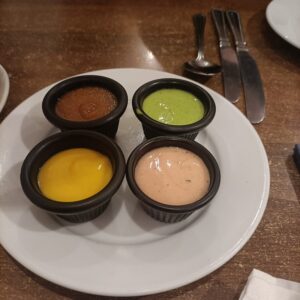 Accompanied by four Dips, enough to amuse. Comments on the Pakora follow.