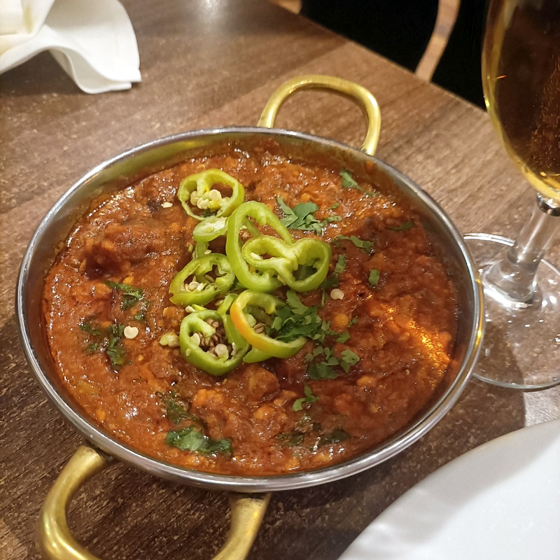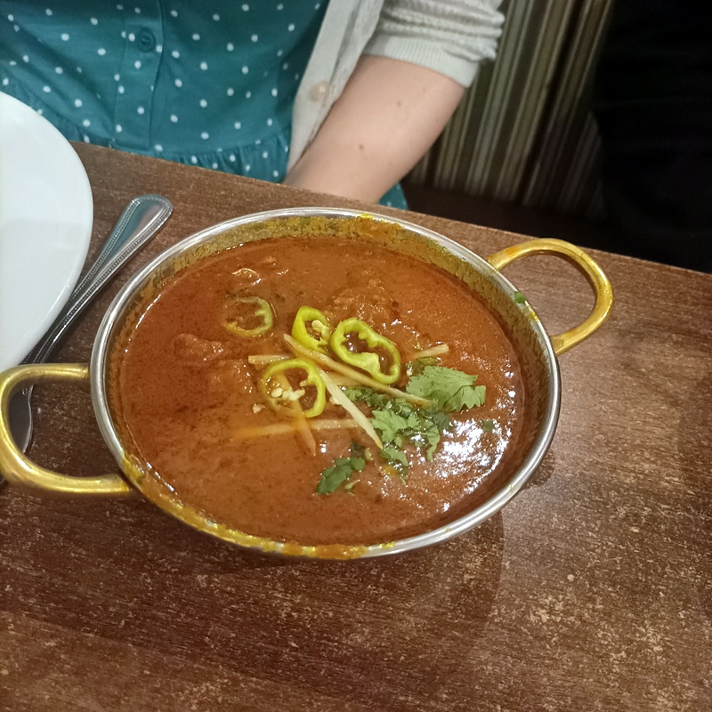 RaRa lamb, (spiciness of madras requested) Tender chunks of lamb in keema. An exceptionally tasty curry, not quite the madras spiciness, nevertheless a glorious, flavoursome experience enjoyed with some delicious soft, perfectly cooked naan bread. Will order again.
