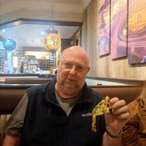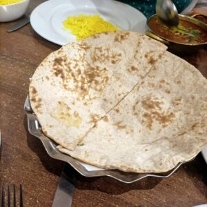 The portions of Fried Rice were hardly touched initially. Steve eventually got around to his, some of Eleanor’s would go home with Howard. Marg’s Wholemeal Chapatti arrived, needlessly halved.