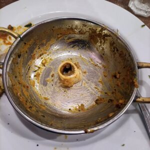 One Sucky Bone was eventually isolated and dealt with. The Tenderest of Lamb, super-soft. Eating directly from the karahi, I didn’t count, there was enough.