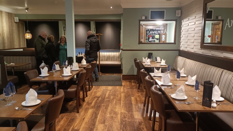 On arrival at a certain hostelry, Eleanor mooted Curry. Despite not having appeared in these pages for four years, she remembered – the rule – no changing of mind at the last minute. Being a Friday evening, the Hector considered that there would be little chance of a table at Annaya’s (80-82 West Princes St., Helensburgh, G84 8XD) without a reservation until after 21.00. As we walked from the waterfront around 20.00, Steve observed that every eatery en route was empty. As it happened, Annaya’s was stowed, as predicted. Rocky, Mein Host, took Marg’s number, he would contact us as and when.