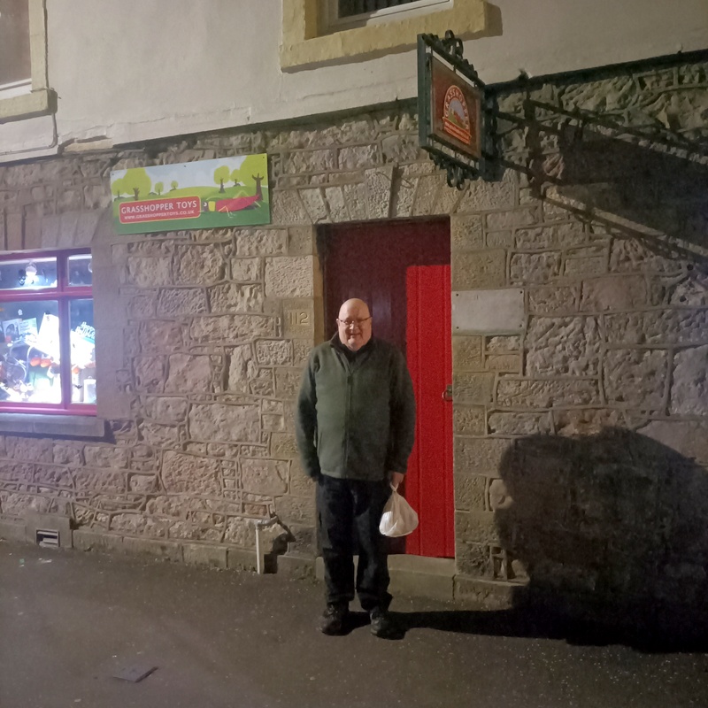 The cats were herded, we were last to leave. Out in the night, Howard, Takeaway in hand, posed in front of his birth place.