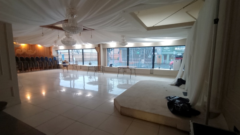 Today, the function room sat cleared of furniture. I did note the addition of the dais, a small stage.