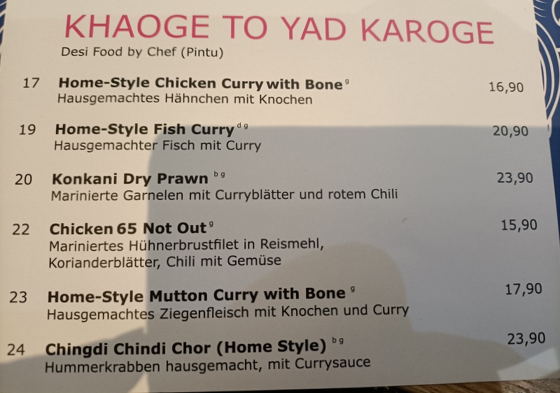 A day in München is not going to pass without a visit to Dessi Tadka (Hofmannstraße 43, 81379  München, Deutschland) which, as the name suggests, serves proper Curry in the – home-cooked – style. Again, to fit in with the model of the day which included a trip out to Kloster Andechs, Curry had to be early. Dr. Stan was almost in tow, but decided his Frühstuck had not fully digested. An Apfelstrudel at the Kloster would hardly make up for missing out on Curry.