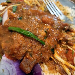 The Onions added crunch, an alternative Texture. The Lemon, added Citrus, which, for me, always works in a Curry. As I broke it down into smaller and smaller pieces, approaching – flakes – I marvelled at the Fish. The Texture was spot on. A bit of chewing, certainly not – rubbery. Why so white? Does this mean Fish Curry is comparable to Chicken Curry in terms of a lack of permeability? No way, not if one has had Chef Pintu’s Fisch Chettinad, and the Hector has had plenty.