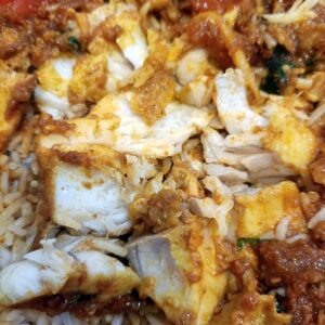 Unusually, the Fish was giving off definite notes of – fishiness – yet on chewing, the Seasoning felt way down. Time to add the Onions, then squeeze the Lemon.