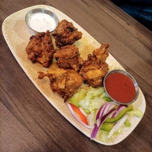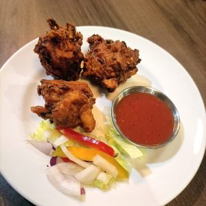 Marg – Crispy on the outside, potato, vegetables & spice on the inside. Enjoyed the red & sweet sauce to dip the Pakora into. A very small salad accompanied the dish.