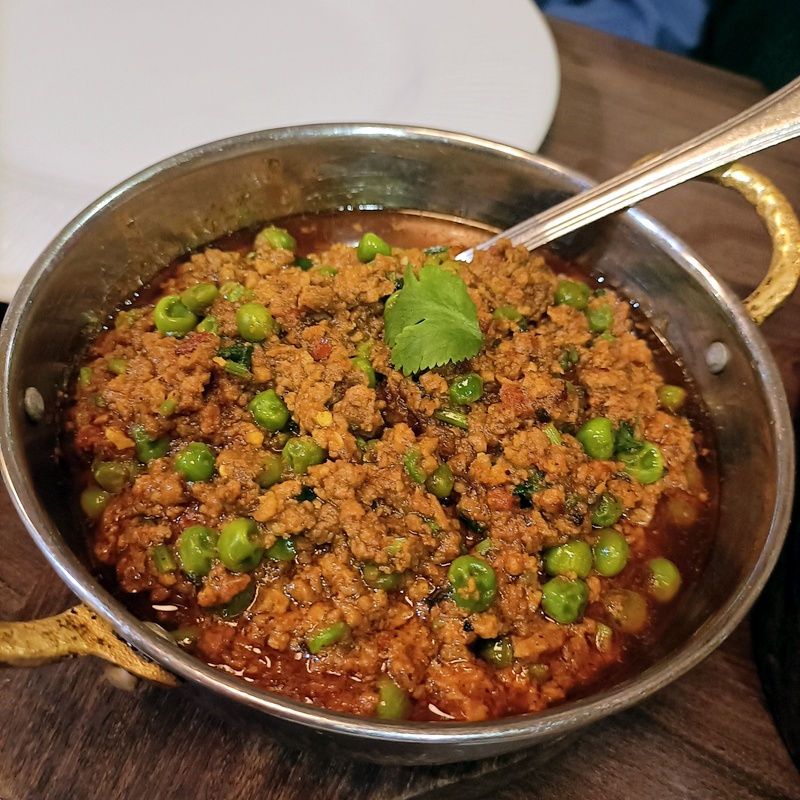 I had promised Clive his favoured Keema Naan (£4.95). Perhaps thereafter, the choice of Curry would be incidental. What does a man have with a Keema Naan? Keema Mutter (£12.50)! Can a man have too much Mince?