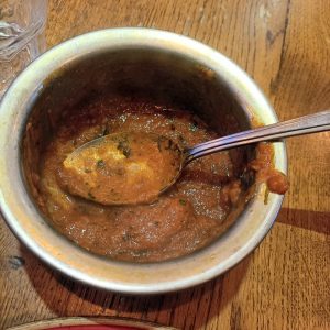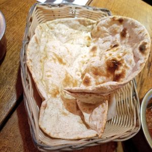 Marg’s Chapatti was served whole, looked Buttery, and apart from the Wholemeal Flour content, almost appealing. Marg likes these, else she wouldn’t be ordering them.