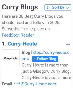 Reliable? On a random scroll yesterday, an accolade was uncovered. Who wins awards? People keep telling me I should be making money from Curry-Heute, nobody ever convinces me how.