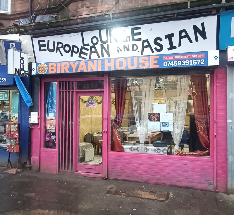 Biryani House (157 Allison St, Govanhill, Glasgow G42 8RY) was spotted from the bus on Monday en route to Shahi Mahal, another addition to the Southside Curry Cafe scene, and an obvious magnet for the Hector.