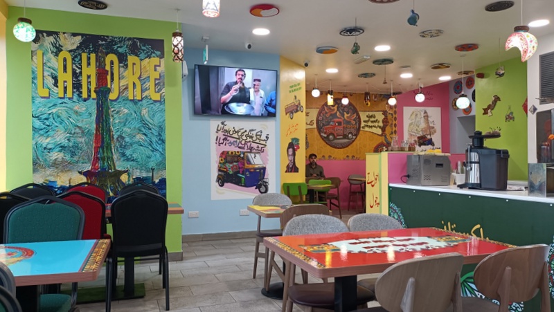 How the décor has changed since then, Pakistani Street Food, an offshoot of the Victoria Road Takeaway, is bright, ice-cream shop bright, with the same garish colour scheme formerly employed by nearby Ambala and the much missed Karahi Palace. And – the facility – here is spacious, spotless, and everything works as it should.