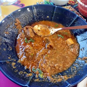 The Spice hit the palate hard, not in a ridiculous way, enough to know Chef meant business. The oh-so-important Seasoning was right up there. Brown, and as Shorva-looking as this Masala was, it had everything one might look for, despite there being no Whole Spices.