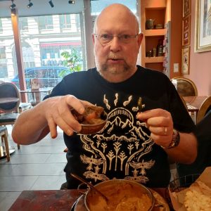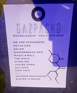 Under Plan A, we would probably have been heading for the door at the end of the show. Mysteriously, no trains tonight, Plan B would have had us try to find a bus to Mainz. With our hotel, one block away from Das Rind, time to hang out. Firstly, with Gazpacho’s road manager, well that is the status I am awarding him. Having spotted him out front over the three nights, time to engage. The swapping of sides was explained, stage left has more depth, more room for the drum kit.