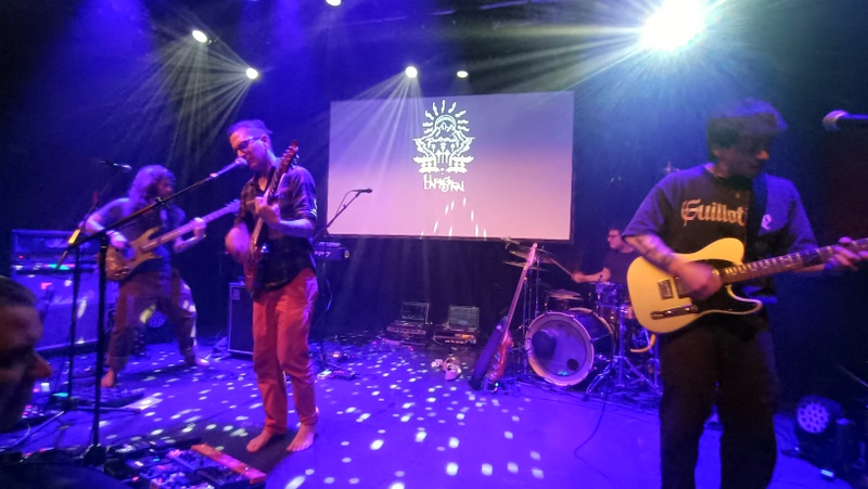 Jumping about, from our high vantage point at Boerderij, we couldn’t help notice that Les Jupins took to the stage barefoot, a la Steven Wilson. This evening, Jonathan sported thongs, whilst Jordan was in trainers. These were cast off after after Frames, and subsequently the socks came off mid song. Respect for someone who can take their socks off standing up, never mind wearing a guitar and playing music. Lost In Night (P) was followed by White Pinnacles (I), Bleak (I), Our Heads Spinning (P) and finally Prognosis (I). Prognosis had maintained its spot as the final song, complete with the thankfully brief growling sequence, though the giveaway that tonight’s set was different was some growling in an earlier song.