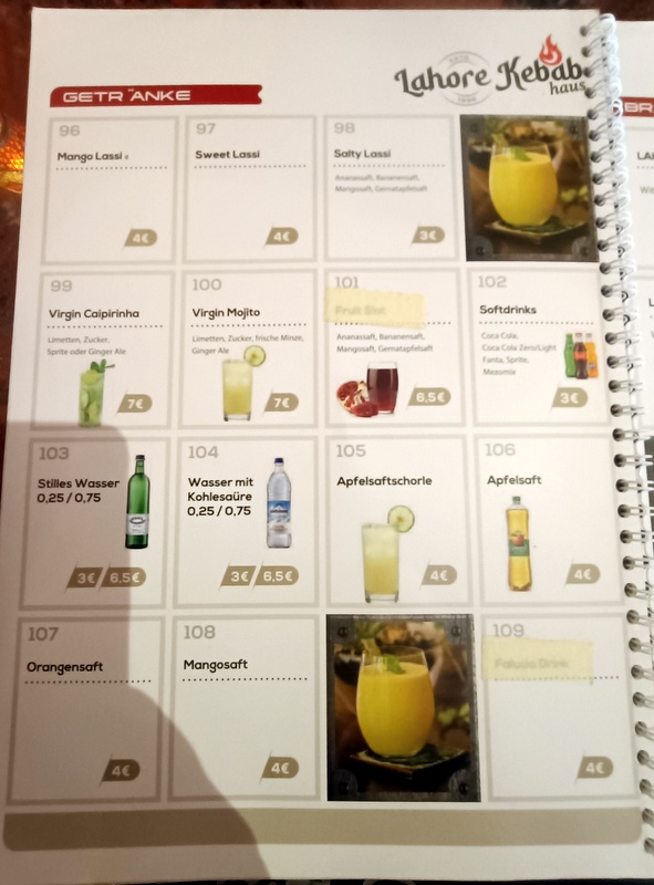 After a late check-our from the Ibis around the corner, we entered Lahore Kebab House at 14.00, the first diners of the day. Two more groups would arrive thereafter. A waitress greeted us in Deutsch, the response was in English. Establish the parameters.