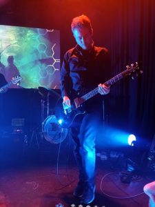 Soyuz One and Golem, the two songs I hadn’t heard before Boerderij, were taking on a sense of familiarity. There was a slight hiatus when Mikael Kromer broke a string on his six string guitar. Kristian to the rescue. We had expected to be standing at the feet of guitarist, our our new best friend, Joan-Arne Vilbo, however, instead we would be within touching distance of multi- instrumentalist Mikael this evening. Marg solved a little problem when Mikael could not manoeuvre the guitar lead off his set-up. Marg’s little fingers to the rescue. Our problem this evening was line of sight. Thomas Andersen on keyboard and drummer Robert Johansen were pretty much obscured throughout the gig.