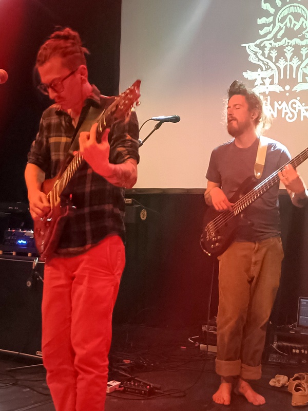 Jumping about, from our high vantage point at Boerderij, we couldn’t help notice that Les Jupins took to the stage barefoot, a la Steven Wilson. This evening, Jonathan sported thongs, whilst Jordan was in trainers. These were cast off after after Frames, and subsequently the socks came off mid song. Respect for someone who can take their socks off standing up, never mind wearing a guitar and playing music. Lost In Night (P) was followed by White Pinnacles (I), Bleak (I), Our Heads Spinning (P) and finally Prognosis (I). Prognosis had maintained its spot as the final song, complete with the thankfully brief growling sequence, though the giveaway that tonight’s set was different was some growling in an earlier song.