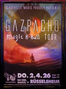 Under Plan A, we would probably have been heading for the door at the end of the show. Mysteriously, no trains tonight, Plan B would have had us try to find a bus to Mainz. With our hotel, one block away from Das Rind, time to hang out. Firstly, with Gazpacho’s road manager, well that is the status I am awarding him. Having spotted him out front over the three nights, time to engage. The swapping of sides was explained, stage left has more depth, more room for the drum kit.