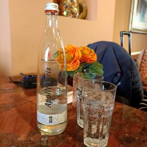 A 0.75l bottle of Sparkling Water (€6.50) completed the Order. To have everything arrive together was the next challenge. Zusammen, a useful word.