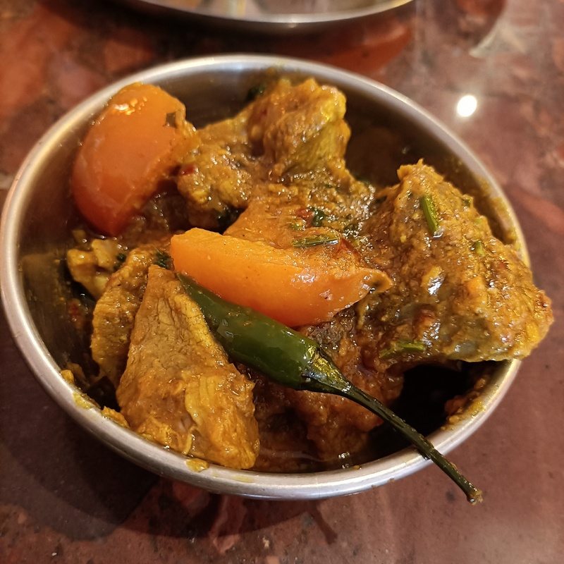 Six pieces of Meat, a Sucky Bone, Green Chilli and pieces of Tomato, sat in a Tomato-based Masala. Karahi Gosht! The Curry I had originally planned to order.