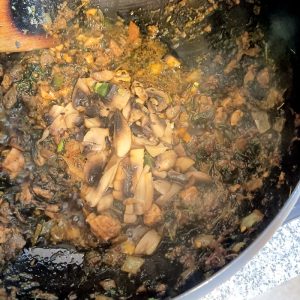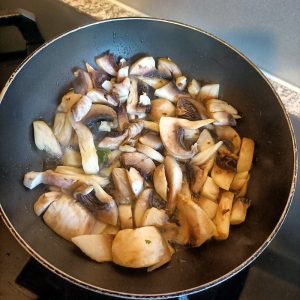 I had fried some Mushrooms in parallel with the aim of having Mushroom Rice as the accompaniment. A change of mind, in went the cooked Mushrooms.