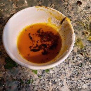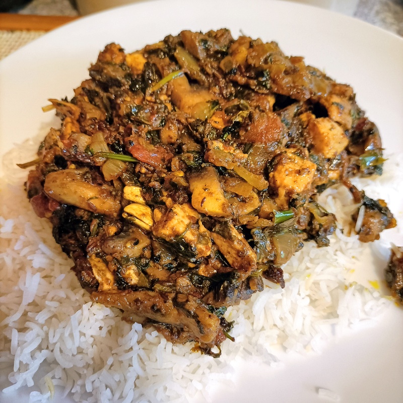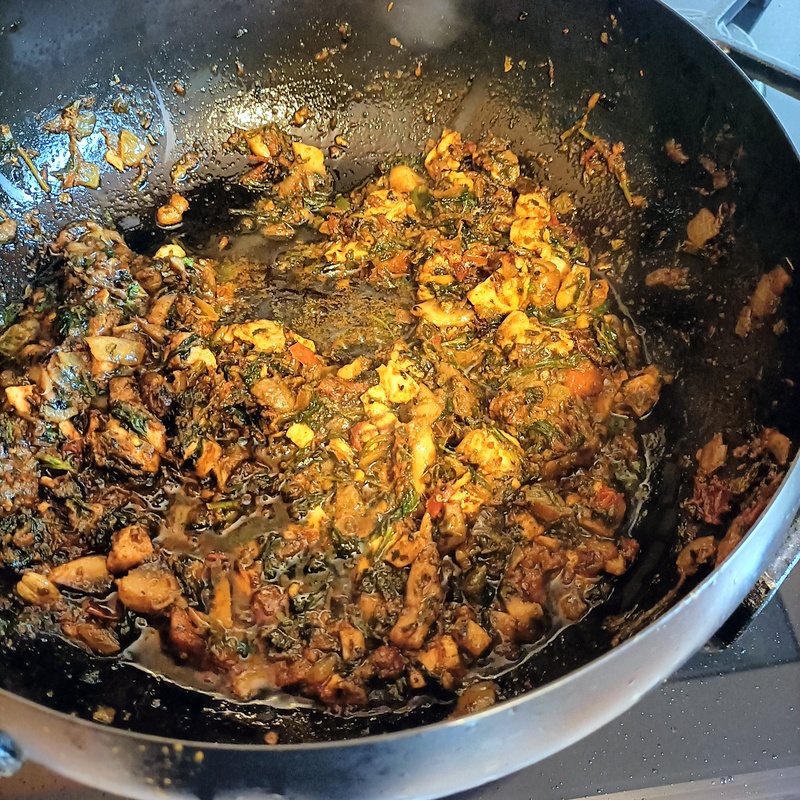 There was now so much Herb in this creation that it was heading towards Saag/Palak. The Dry Red Chillies were fished out, no need to have these on the dinner plate.