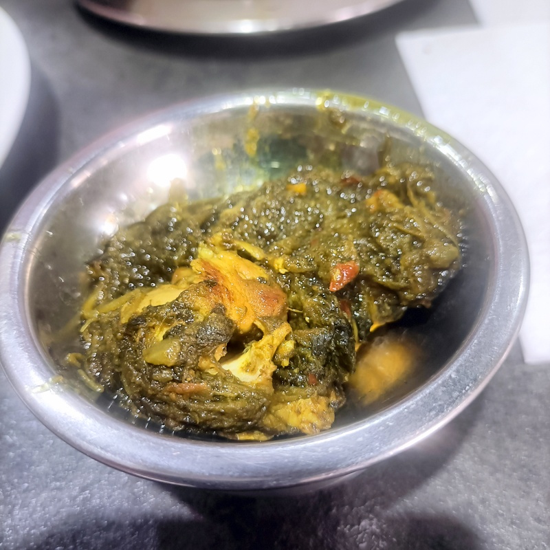 He disappeared to the kitchen then returned with a Soupçon of the Palak Chicken which had just been prepared.