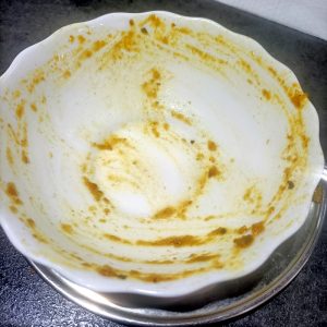 The first dip of Naan in the Shorva took me back half a century, authentic, traditional fayre. The sharpness caught the back of the throat as Curry did in Hector’s formative years. The Seasoning was spot on. The Flavours, remarkable as always. I picked out two hard shards, Cinnamon, possibly Star Anise. So much pleasure and the solids not even tackled yet.
