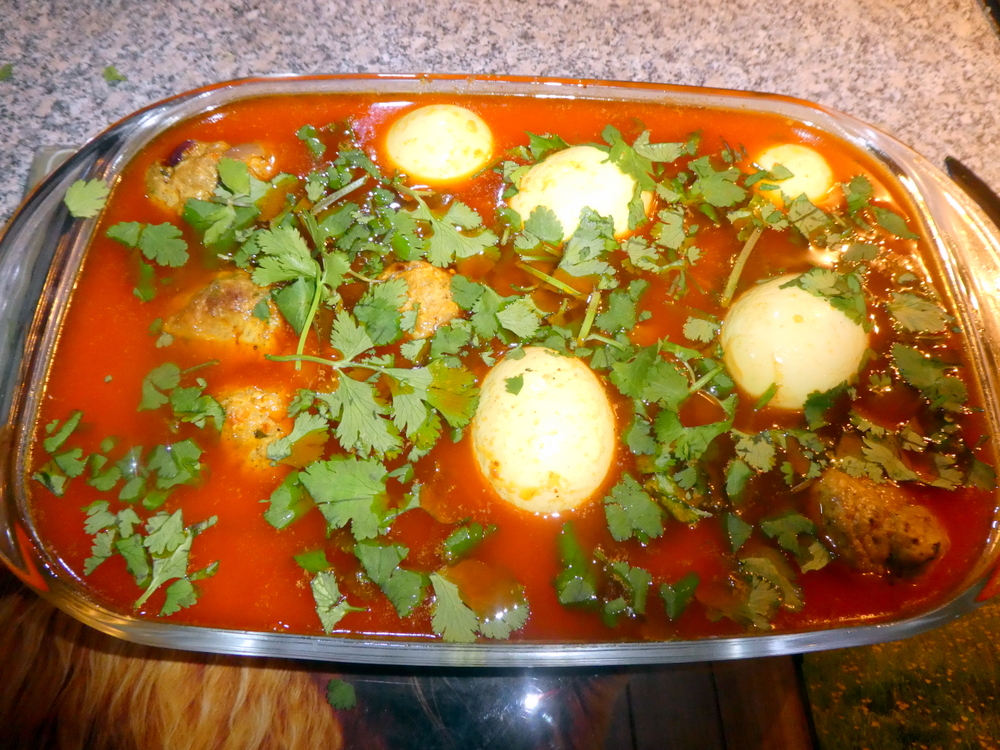 7) Add the Kofta, cook for ten minutes, then turn Kofta over cook for another ten.
