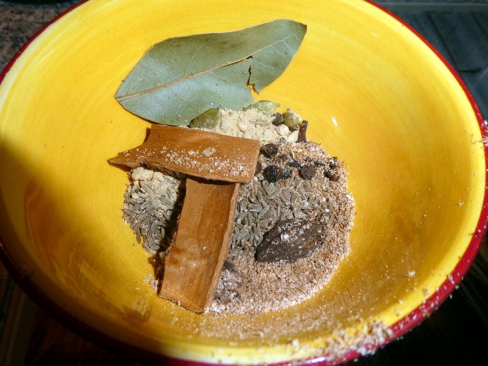 2) Fry the chopped Onion until it browns, add the first batch of Spices, stir in.