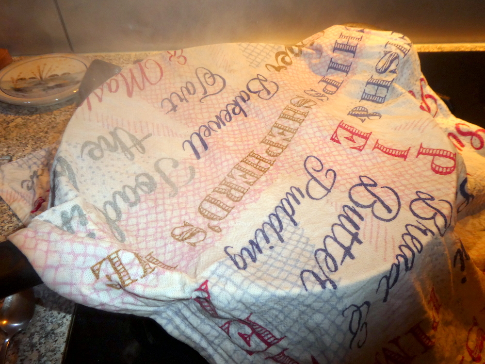 8) When the rice has absorbed all of the water, place a damp cloth on top of the rice.