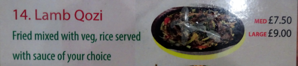 Hector had spent the afternoon studying – this page – on Curry-Heute. What to have? Something more than Meat was required. Akbar-e-Balti (£9.45) ticked the boxes featuring Lamb, Potato and – Chicken. I feel a Chicken Curry is looming, but not yet. At the risk of self-flagellation, Karella Ghosht (£8.95) was considered to be a worthy choice. In the early days of Curry-Heute, Hector started visiting Karahi Palace, Karela Gosht appeared often in these pages, now I can find it to be – too much.