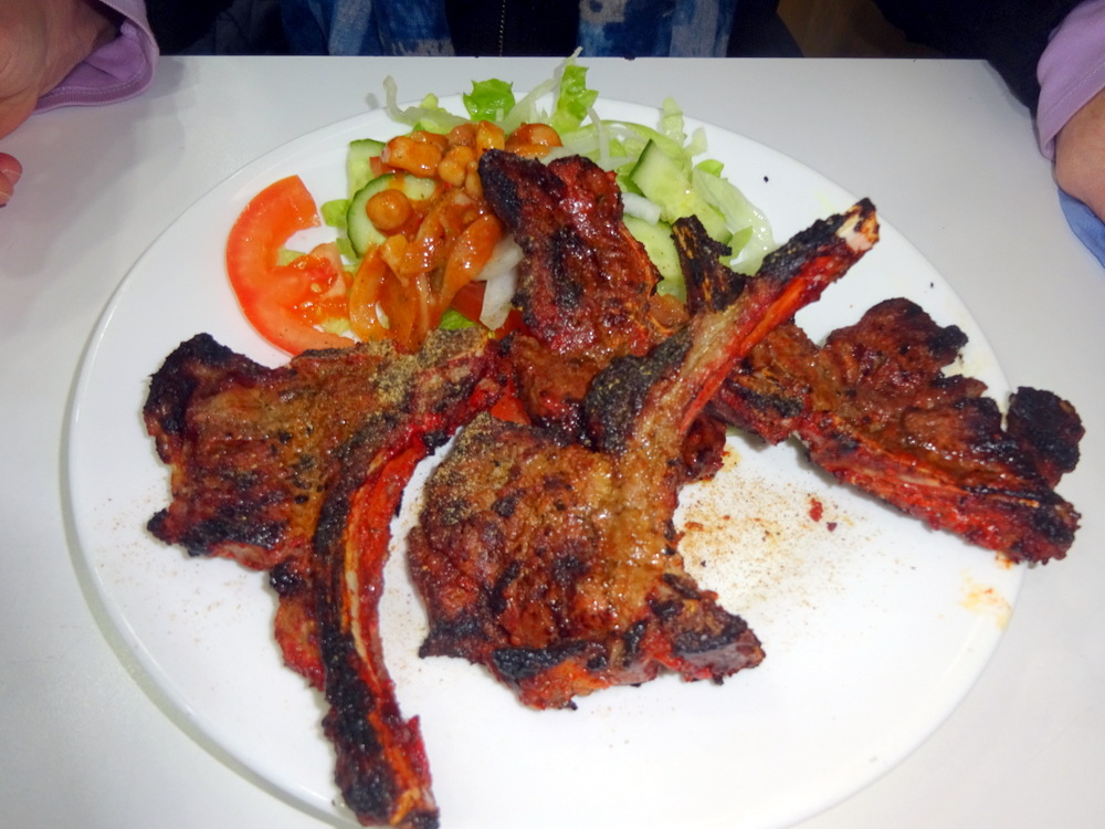 Two portions, eight Lamb Chops in total, the Chaps were allocated two each. Yay! Given what would follow, two was probably an elegant sufficiency. With a suitably cremated exterior and cooked through more than two weeks ago, the first Chop was an absolute joy of Succulent Meat with a decent – Kick.