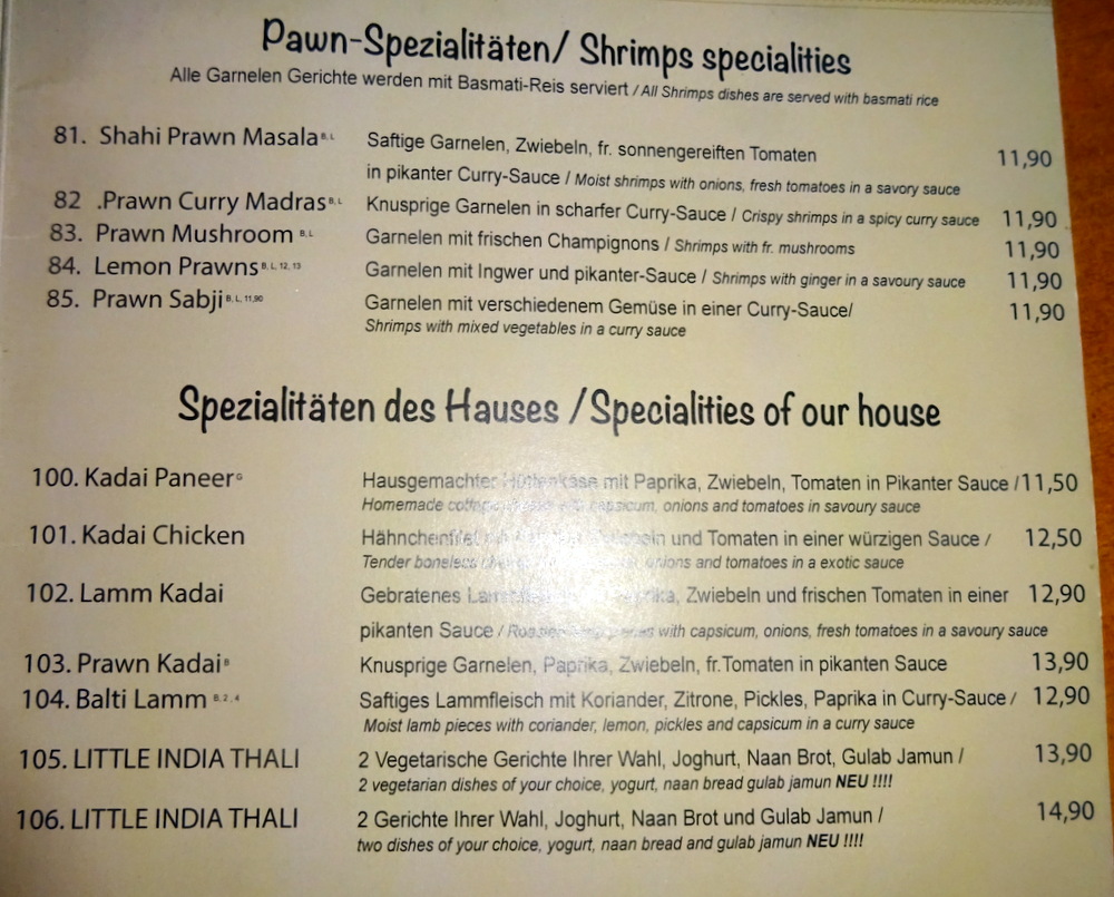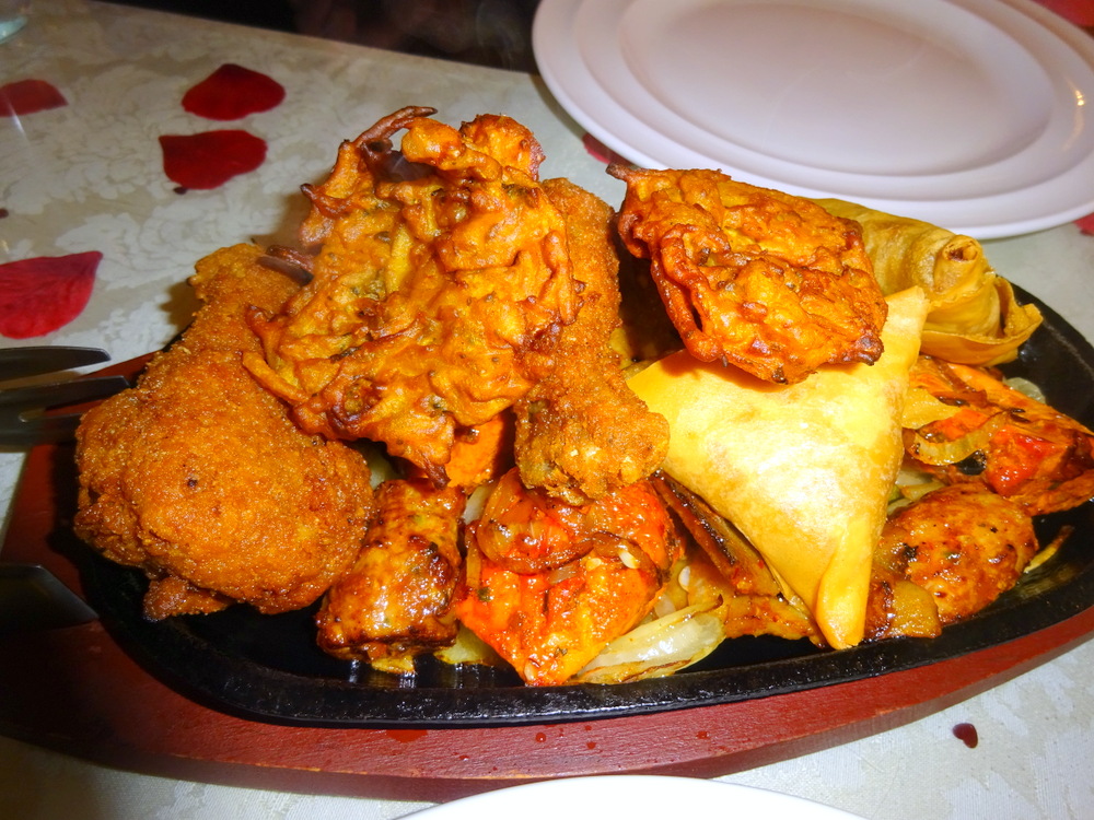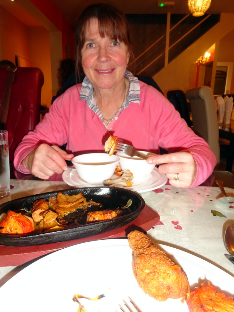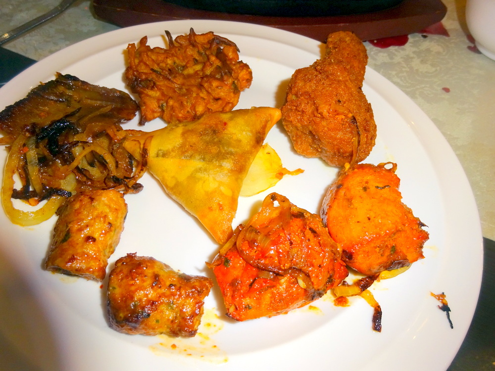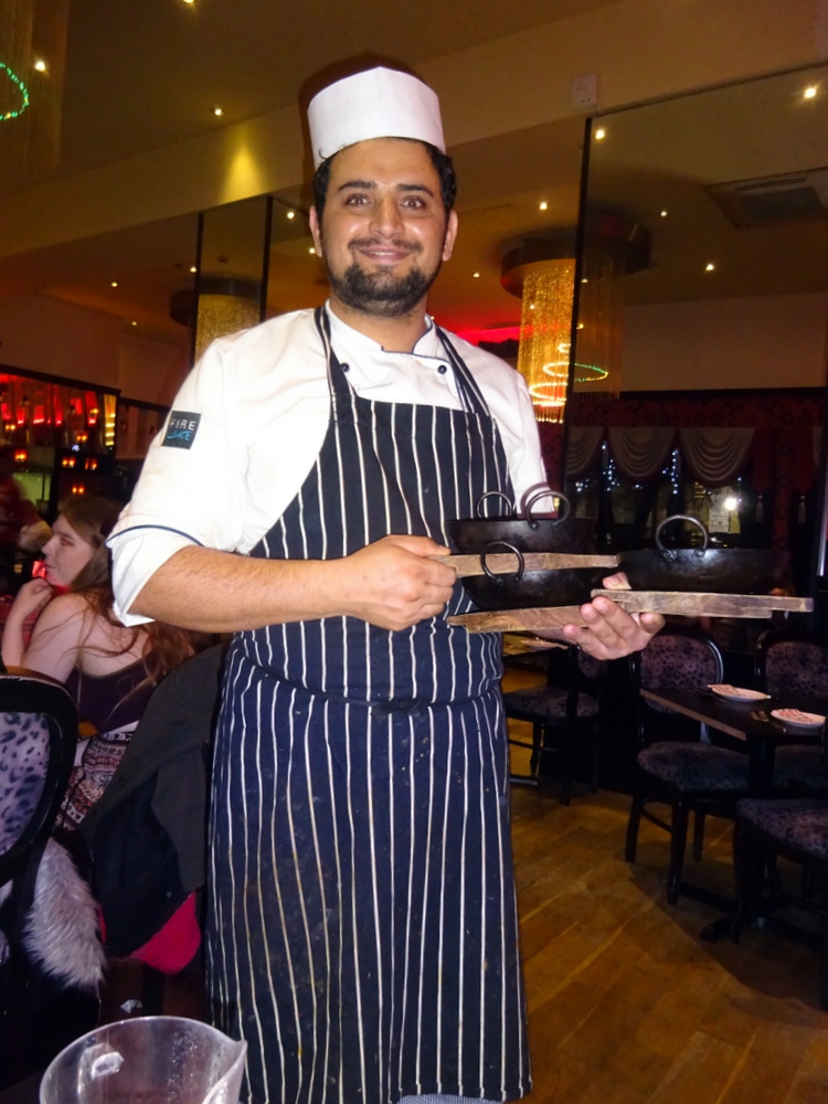 We were shown to a table adjacent to the Buffet which presumably had come to an end, one other group of diners were finishing their meal. Marg disappeared downstairs, the Hostess came over to chat. She would offer us any Main Course and Sizzling Starters at the Buffet Price (£11.95). I described my desire for a genuine Lamb Karahi but was unsure as to what Marg had in mind. On her return Marg mentioned Butter Chicken but wasn’t certain she would do it justice if we were having Starters. It was agreed that the Butter Chicken would only be ordered once the Starers were finished.