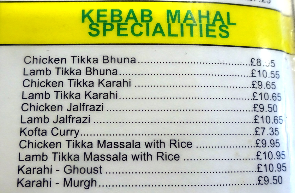 The final Curry of 2018 is in Huddersfield, at a new venue for Hector, Sher e Akbar (80 Blacker Rd., Birkby, Huddersfield HD1 5HN England) kept popping up on Google Maps. Having studied the Menu online, two Dishes caught the eye. Under – House Specials – is Lamb Karahi (£7.50), and under – Chef Specials – is Karahi Gosht (£6.50), neither mentions the dreaded Capsicum, the latter includes – green bullet chillies. Sher e Akbar was calling Hector, Marg was in tow.