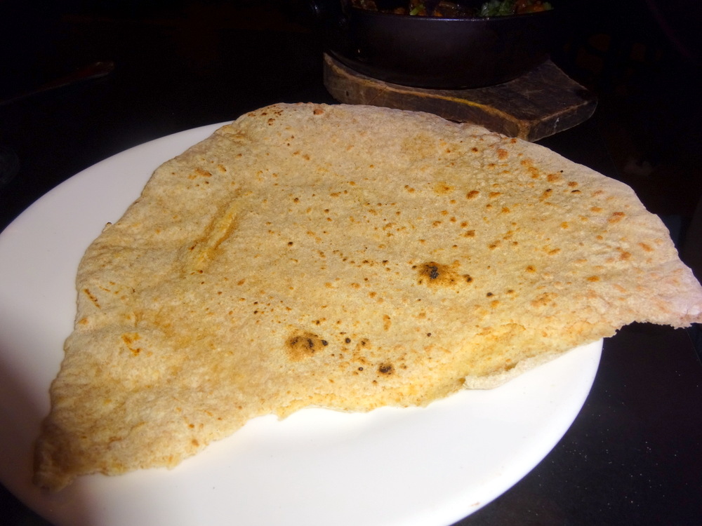 The Chapatti was served halved, a needless bit of cutting. It was of the Wholemeal variety. One was easily enough given what else had been had been eaten this evening.