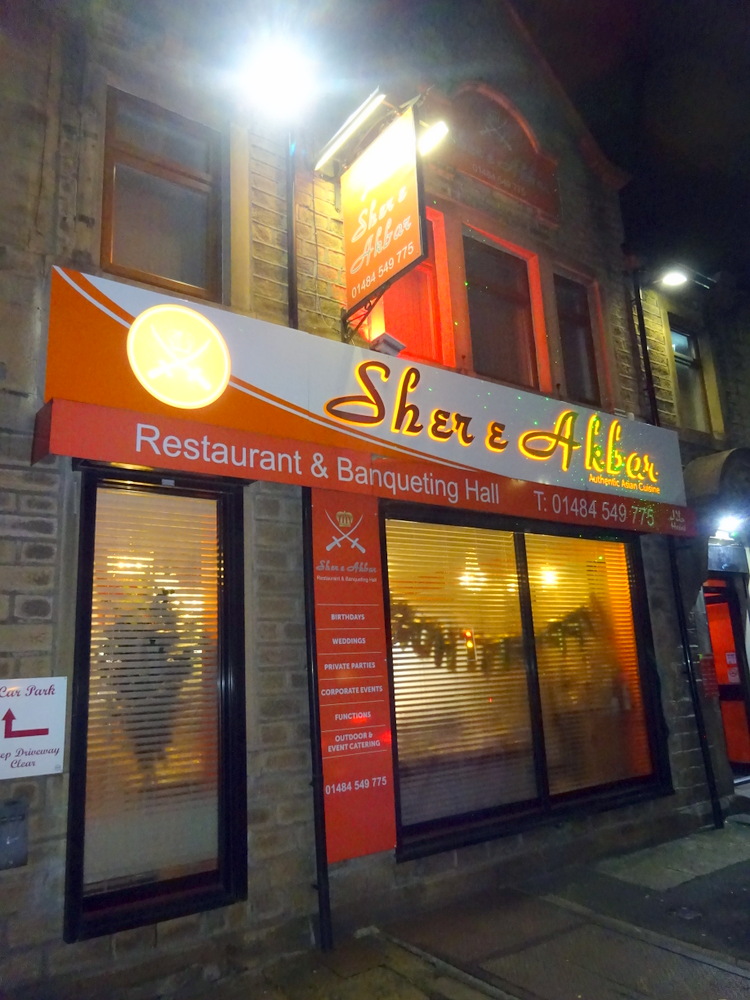 What appeared to be the Chef was out from the kitchen. As we departed, I acknowledged his contribution to what was a memorable visit. We had been well looked after, the Curry had been cooked as asked for. I would have no hesitation in returning to Sher e Akbar, but they open late afternoon and close before the pubs which is not within Hector’s normal Curry window. It’s a Huddersfield thing. Actually, it’s universal.